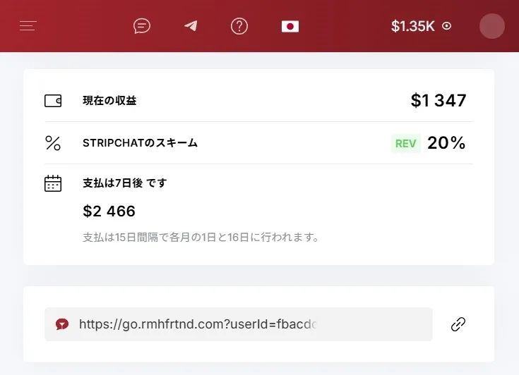 実際のところ、Chaturbate(チャターベート)はおもにアメリカなど。海外ユーザー向けで日本人の利用者がすくないため、日本語でのアフィリエイトで稼ぐなら、”Stripchatアフィリエイト” の方が圧倒的に稼ぎやすいです。